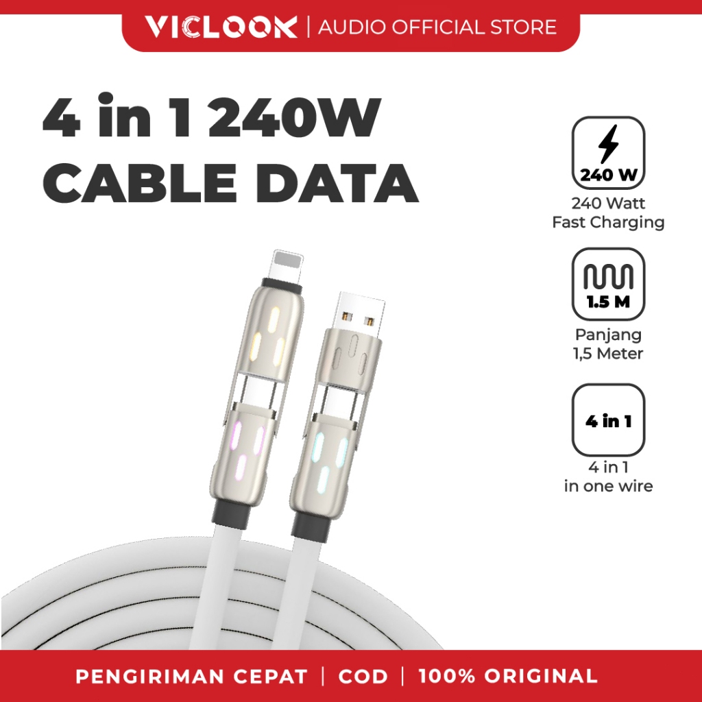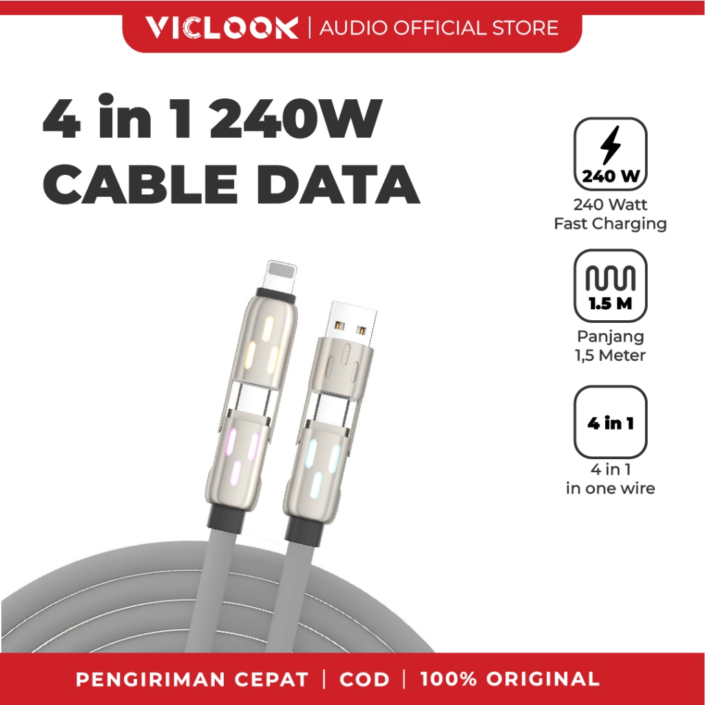 VICLOOK Cable Data 240W Fast Charging Kabel Data Micro USB, Type C, Lightning PD 4in1