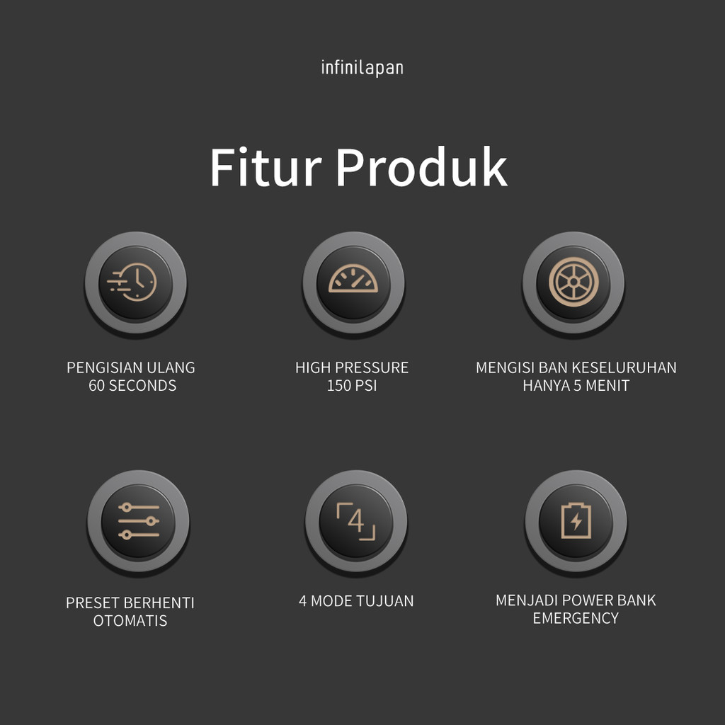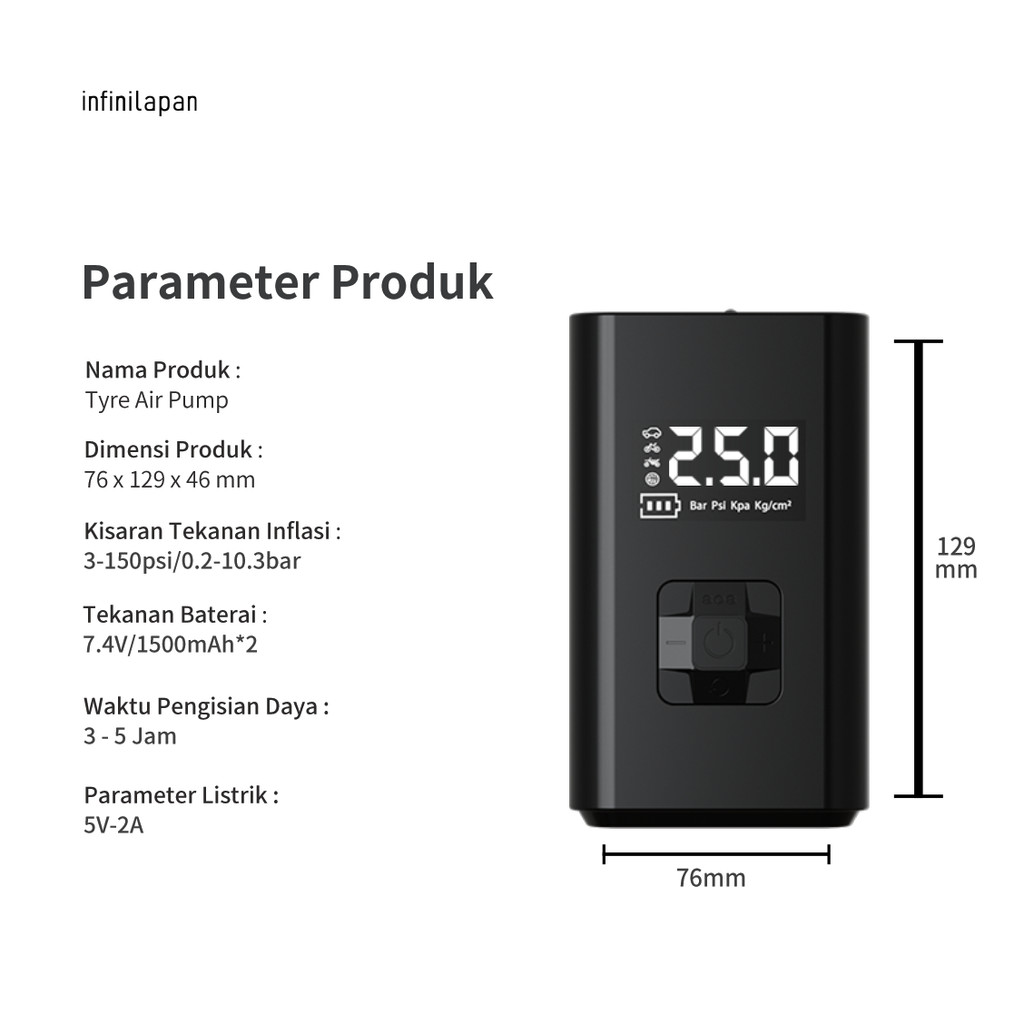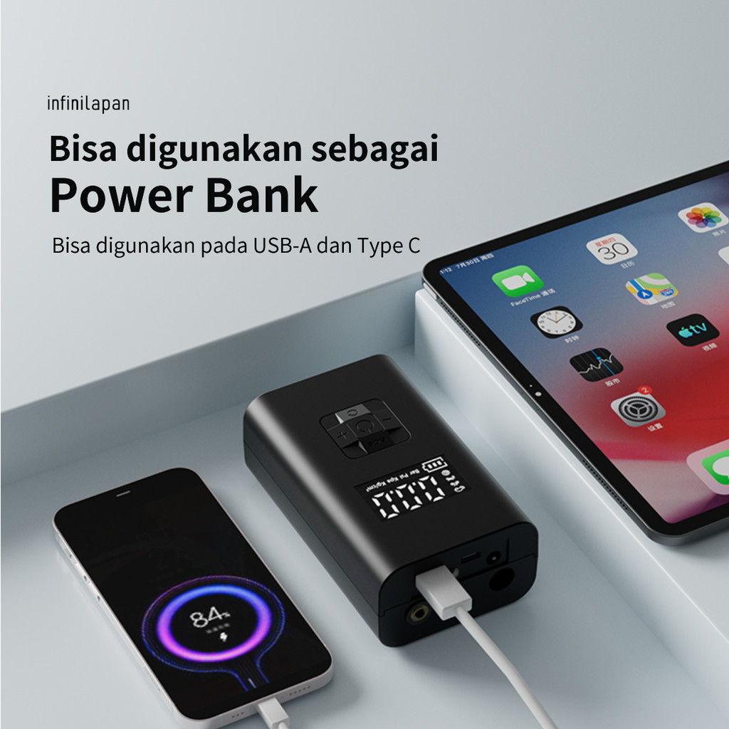 Pompa Angin Battery Portable Multifungsi | Portable Air Pump 2-in-1 - Pompa Ban dan Charger Handphone | Pompa Angin Ban