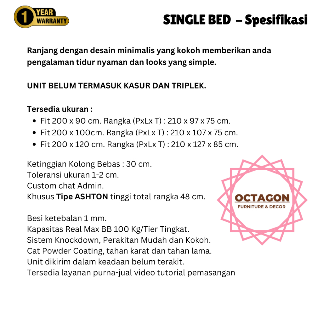 RANJANG BESI MINIMALIS SINGLE ANDERSON 90X200 100X200 120X200