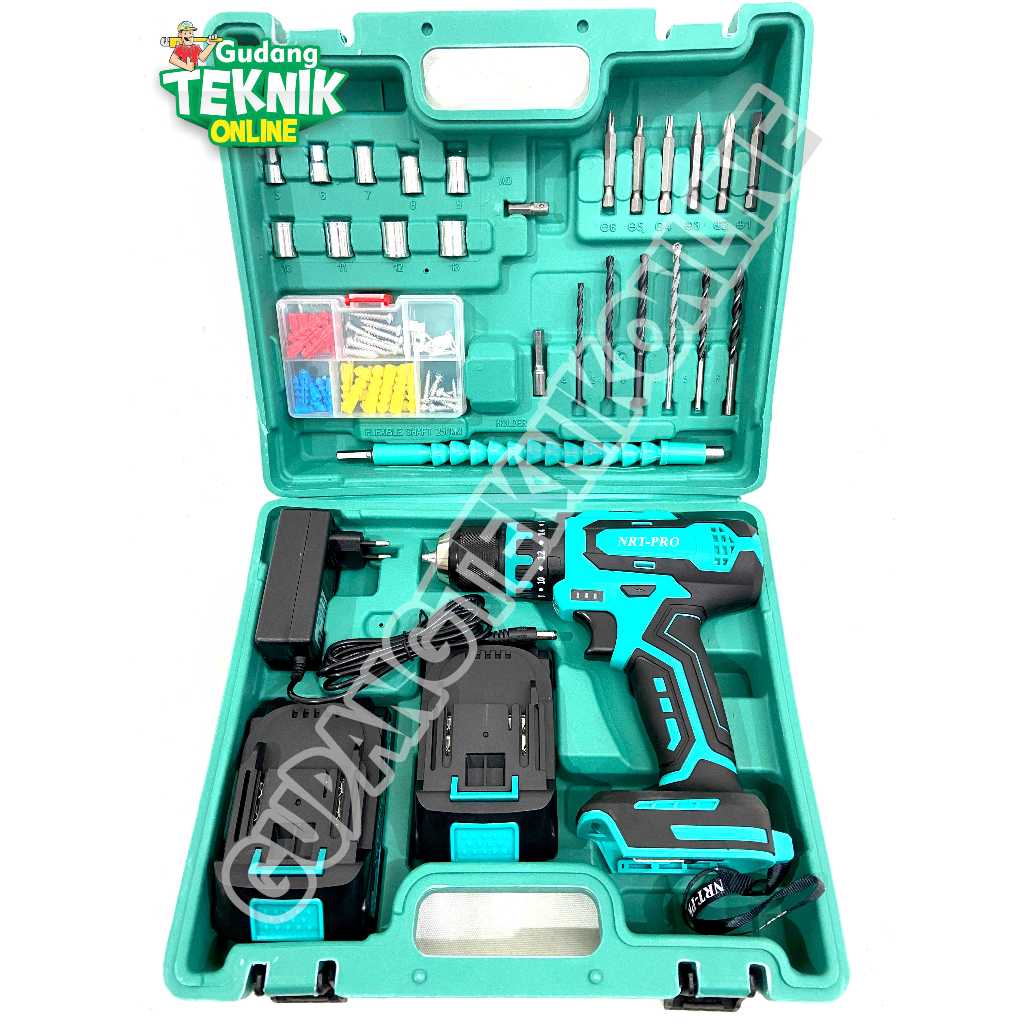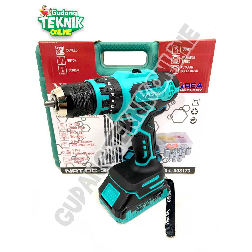 MESIN BOR TANGAN NRT PRO 340SET Cordless Drill NRT PRO DC 340 SET Bor Baterai Impact Drill 20V Bor Tembok Beton Set Akse