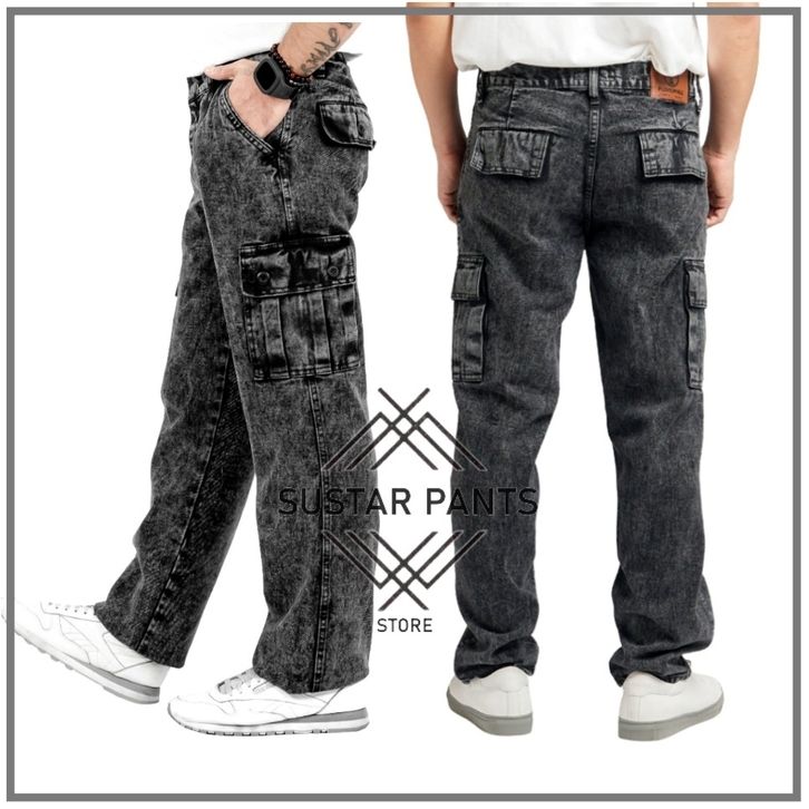 Cargo Jeans Cowok Cargo Pants Jeans Celana Cargo Jeans Loose Fit Reguler Standard Black Sandwash Fashion Kekinian