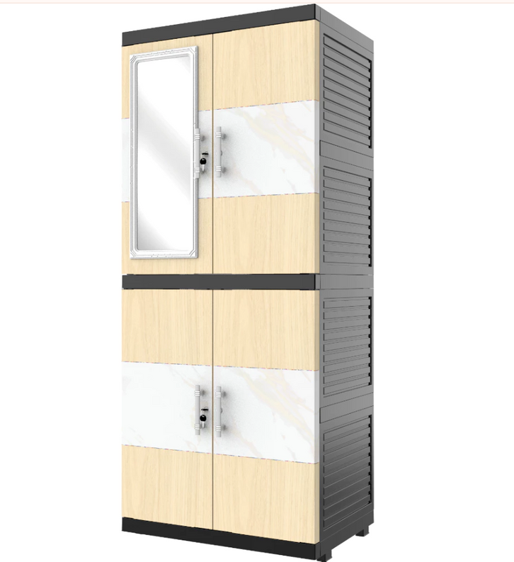 JUMBO LEMARI PAKAIAN PLASTIK NAIBA MSC FIT CERMIN SUSUN 4 MODERN - FULL KUNCI