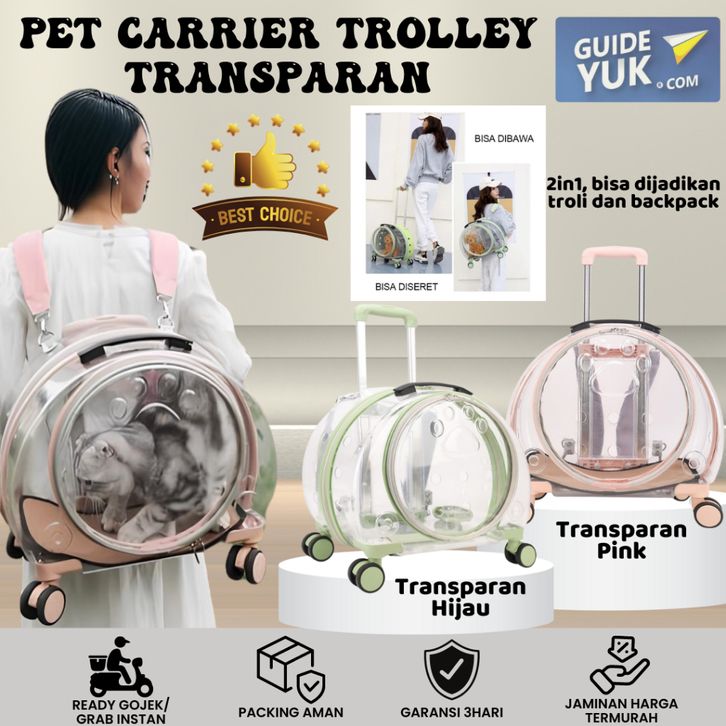 Pet Carrier Trolley / Stroller Trolley Backpack Transparent / Tas Troli Hewan Untuk Travelling
