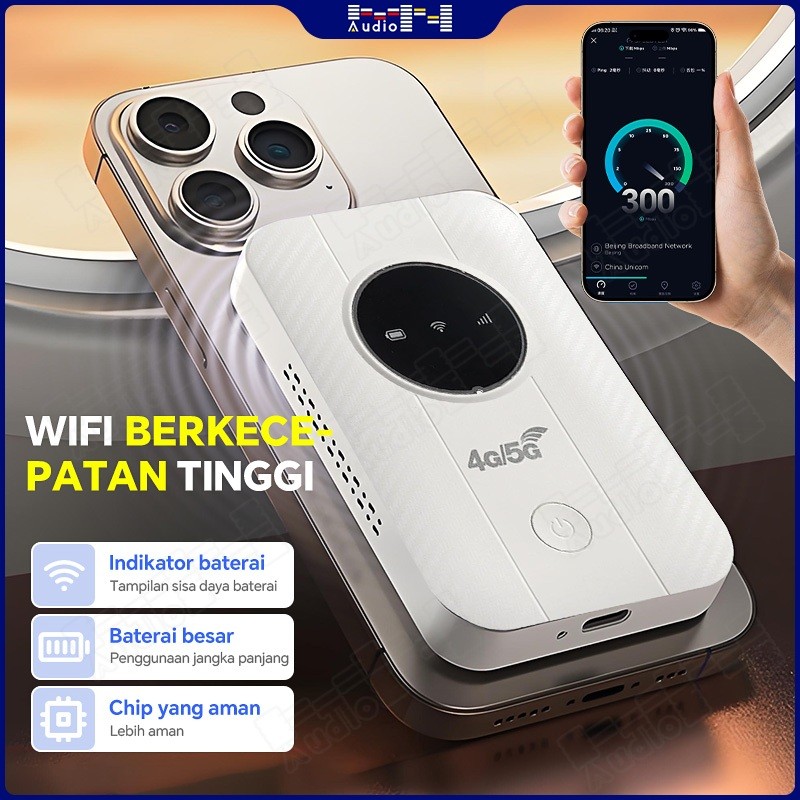 Mifi Modem Wifi 4G/5G LTE Wireless Router 300Mbps Unlock Semua Operator SIM Card Langsung Mobile Broadband WiFi Hingga 10 Perangkat with 2100mAh Battery