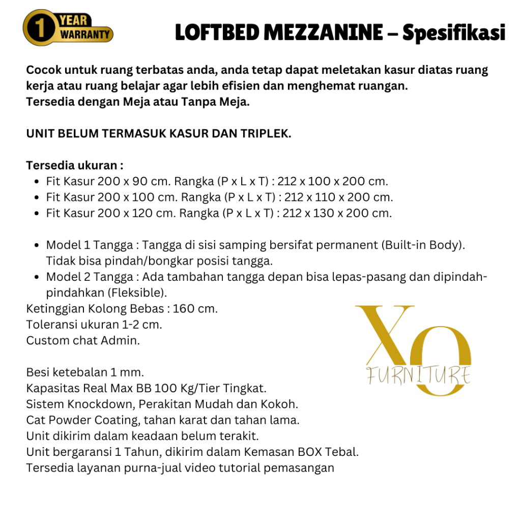 RANJANG TINGKAT ATAS KOLONG MEJA RANJANG MEZZANINE RANJANG LOFTBED SUSUN BESI LB