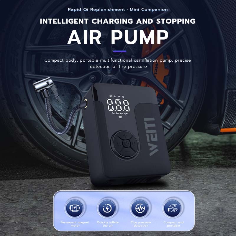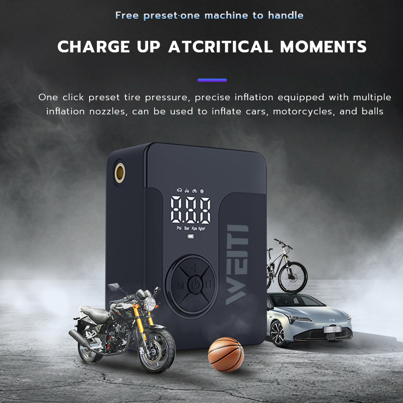 Pompa Ban Elektrik P011-2 Udara Portable WEITI 10000mAh Air Pump Inflator Electric Pompa Ban Pengecekan Tekanan Angin