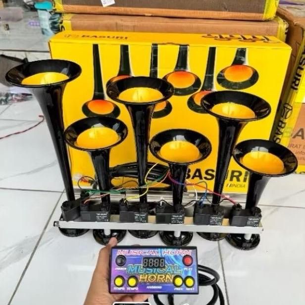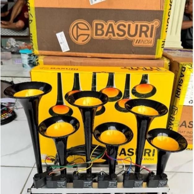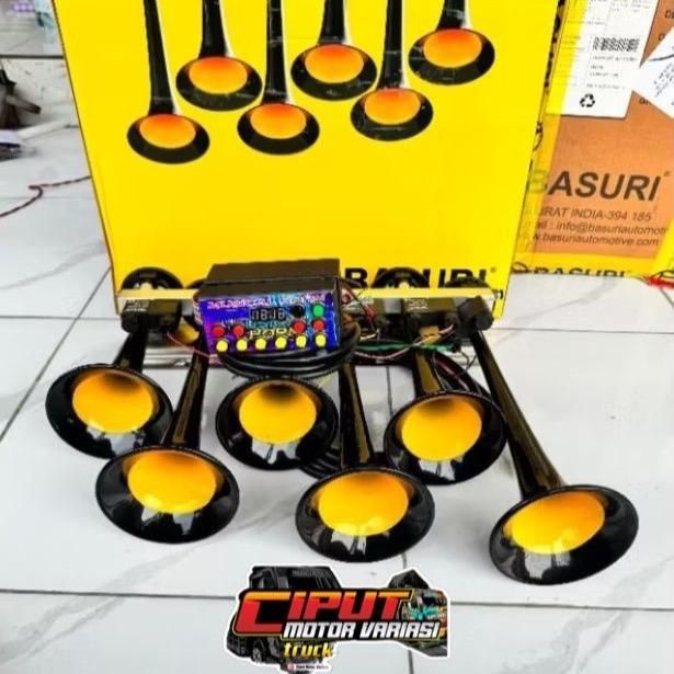 KLAKSON BASURI ORI V5 TERBARU, 6 CORONG BASURI V5+KABEL TERBARU 12V/24V - Basuri V5 Set Kabel, 12V