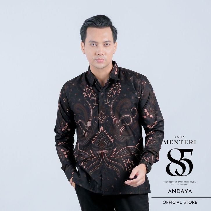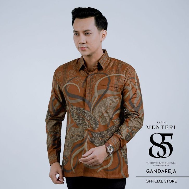 Kemeja Pria Lengan Panjang Motif Batik Menteri 85 Modern Slim Fit Premium