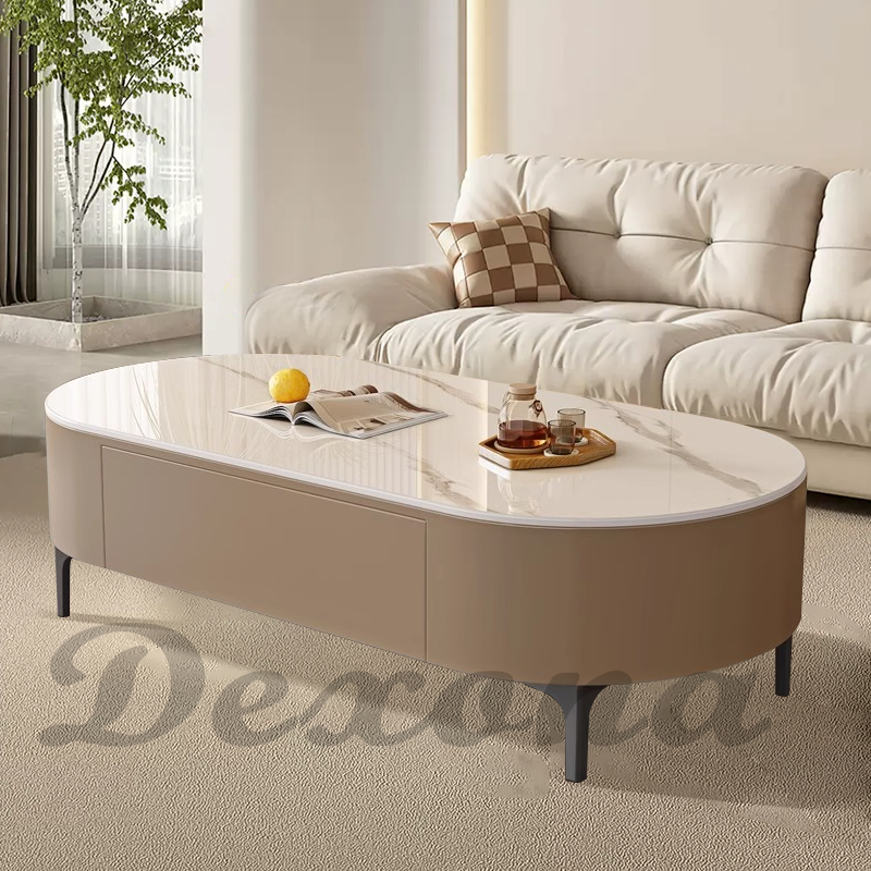[Star] Meja Tamu Marmer Dengan Laci Meja Kopi Meja Tamu Minimalis70+60 cm Marmer + Kaca Tempered meja persegi aesthetic