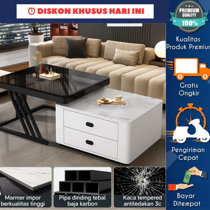 [Mall] Meja Kopi Minimalis Meja Tamu Minimalis70+60 cm Marmer + Kaca Tempered meja persegi aesthetic