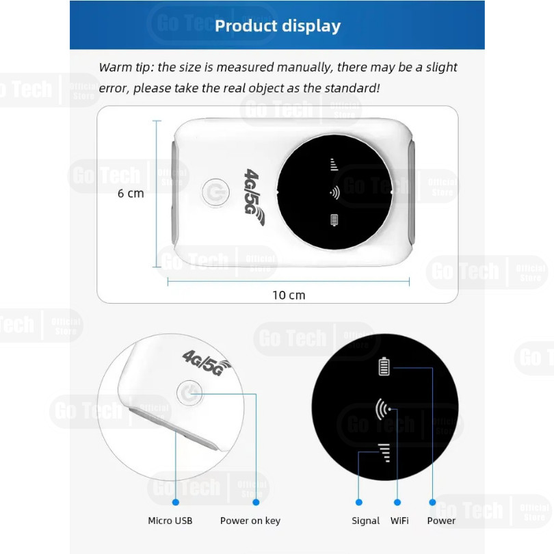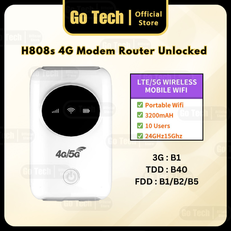 Go Tech - H808s 4G Modem Router Unlocked Modem Mifi Hotspot Portable Wireless 4G/5G "" Support ALL TELCO Hotspot Portable WIFI Router Sim Card 4G or 5G WIFI Router Sim Card SMARTCOM GT
