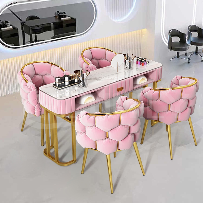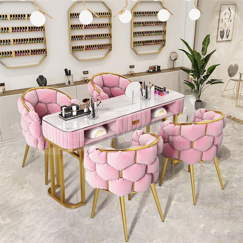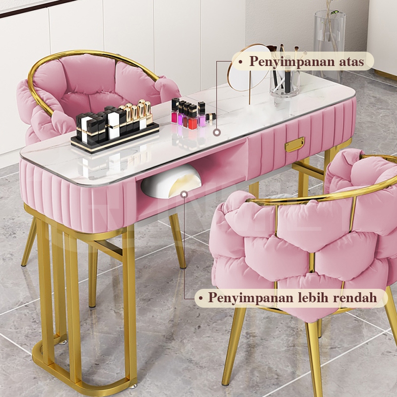 Meja Nail Art 100/140cm Besi + Kaca Tempered Meja Salon Kuku Meja Manikur Ganda Meja Rias Modern Meja Belajar Meja panja