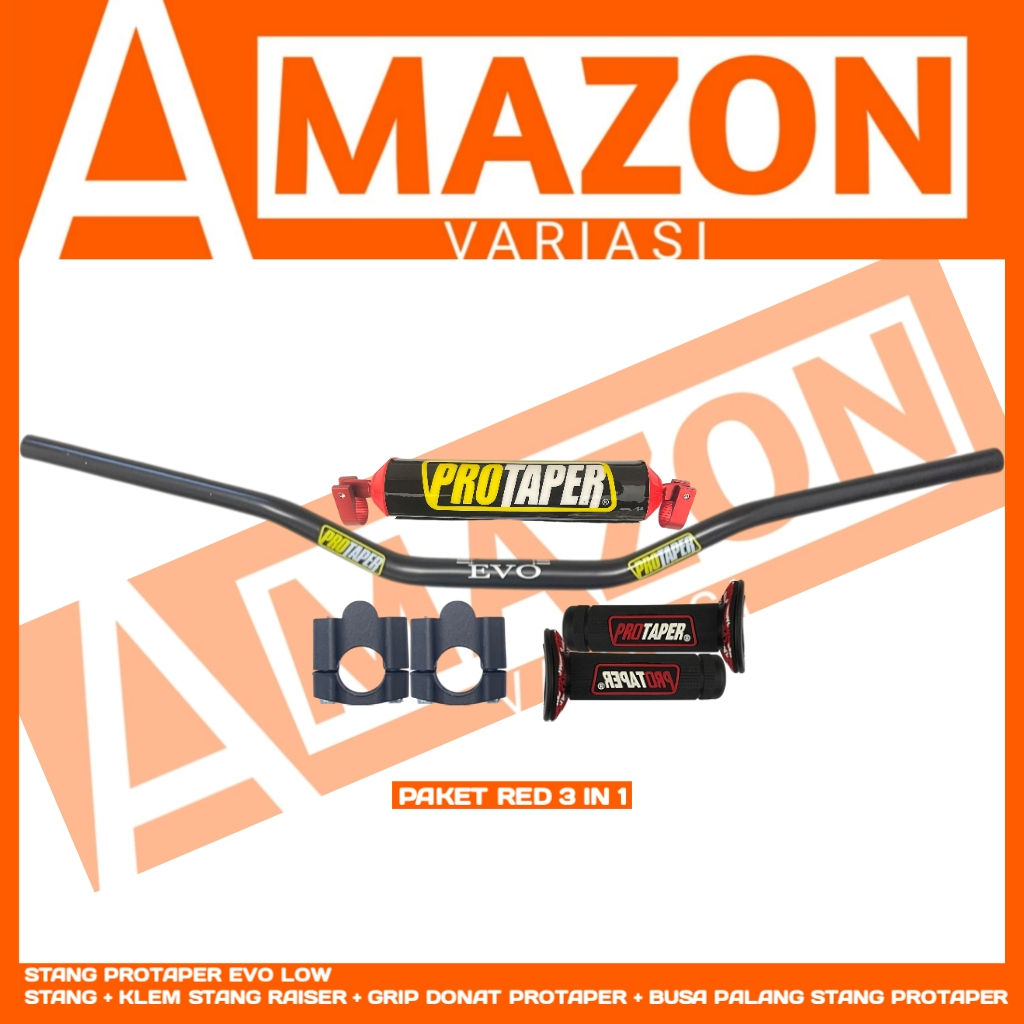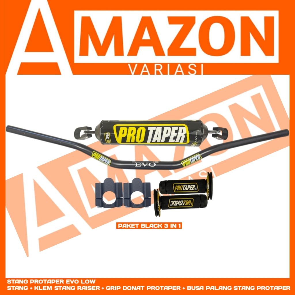 PAKETAN STANG EVO LOW PROTAPER PLUS RAISER + BUSA STANG BULAT DENGAN STABILIZER + HANDGRIP GRIP PROTAPER UNIVERSAL KLX ,