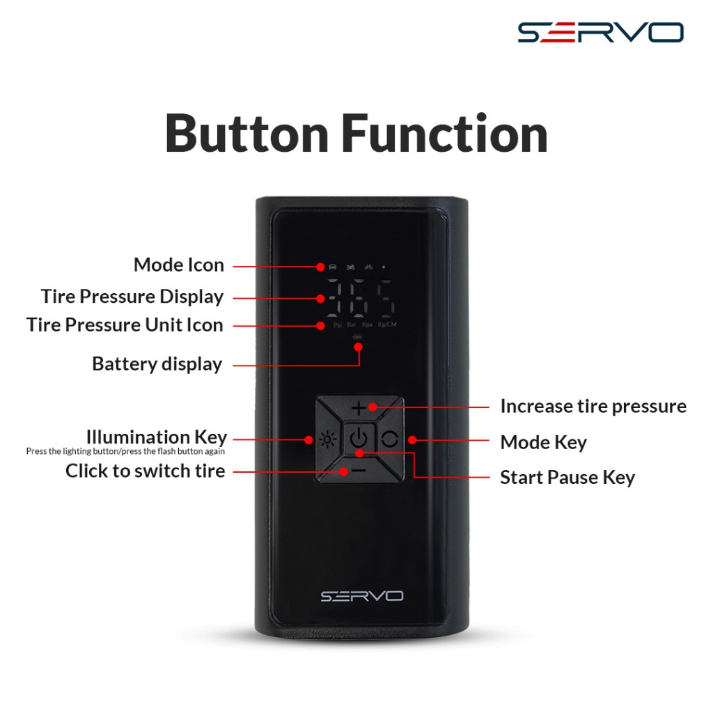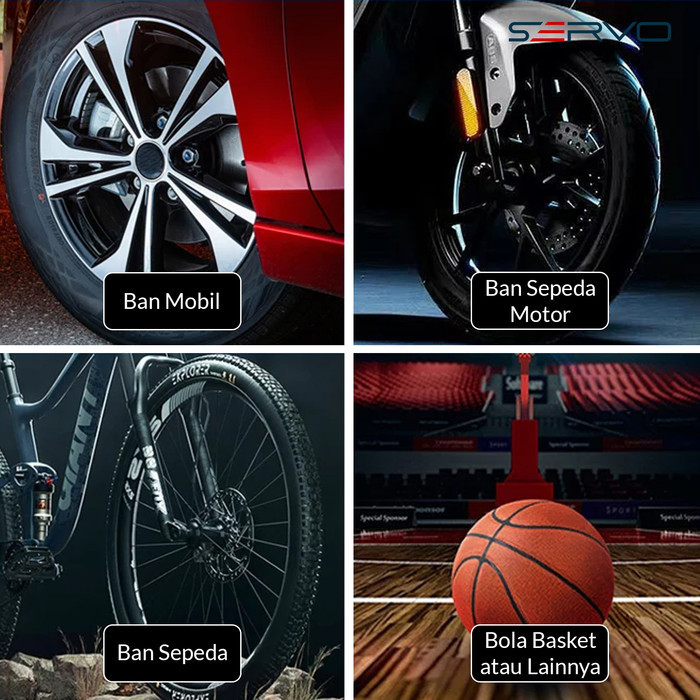 Servo Road - Electric Tire Pump CQB-9620 Pompa Ban Elektrik LED Pemompa Angin Ban Motor Mobil Sepeda Bola E-Pump Portabl