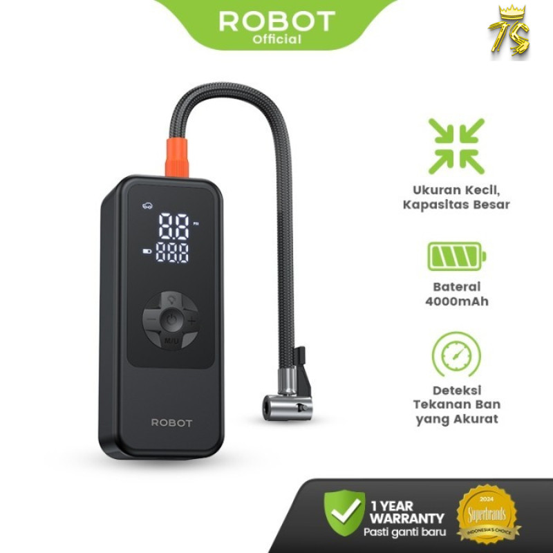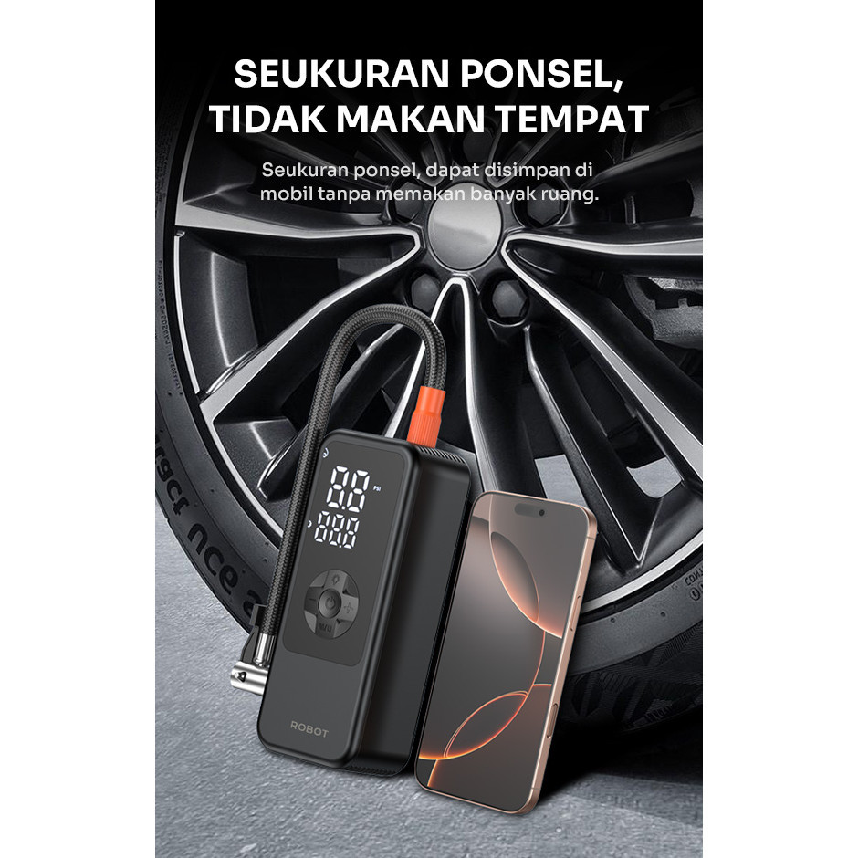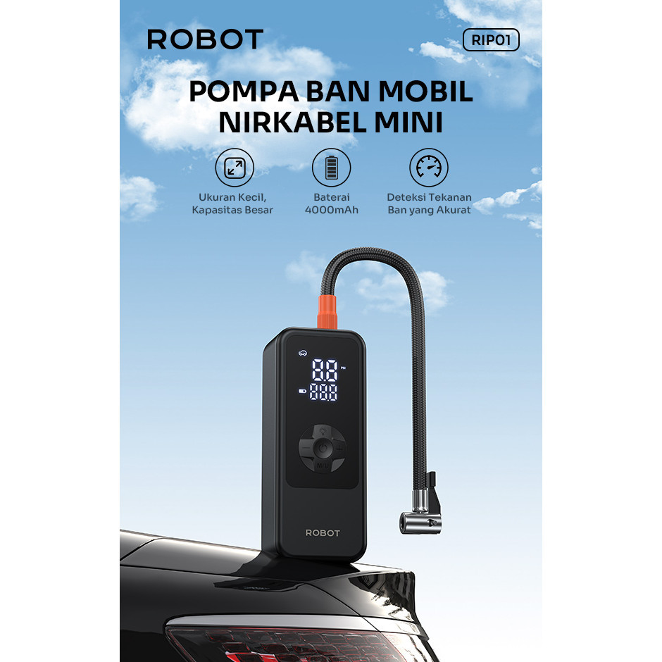 Robot RIP01 Pompa Ban Mobil Portable Inflator Pump Nirkabel Mini Elektrik LCD