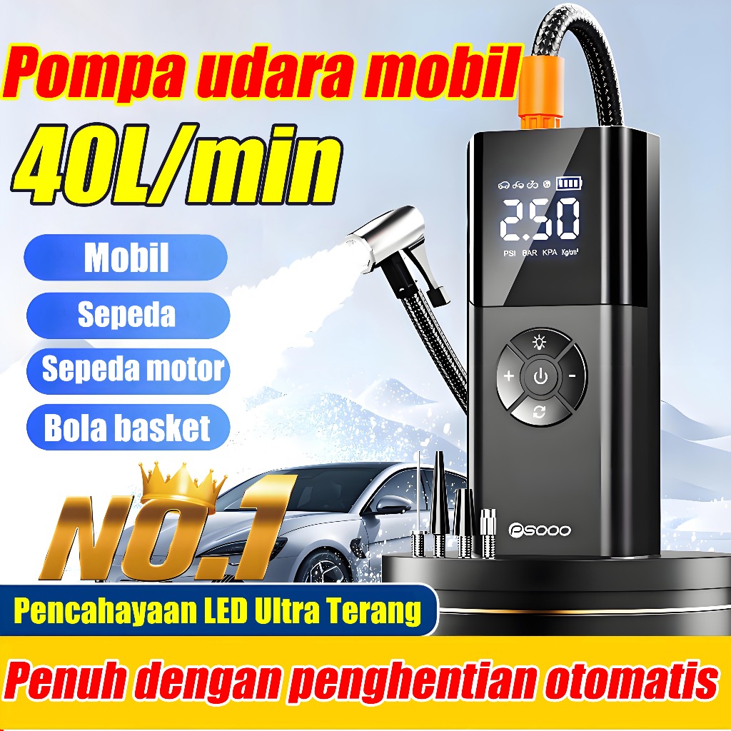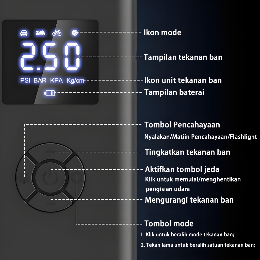 Sekejap penuh! YURUI Pompa ban listrik Dilengkapi lampu penerangan Layar LCD digital Tampilan tekanan ban Pompa udara mo