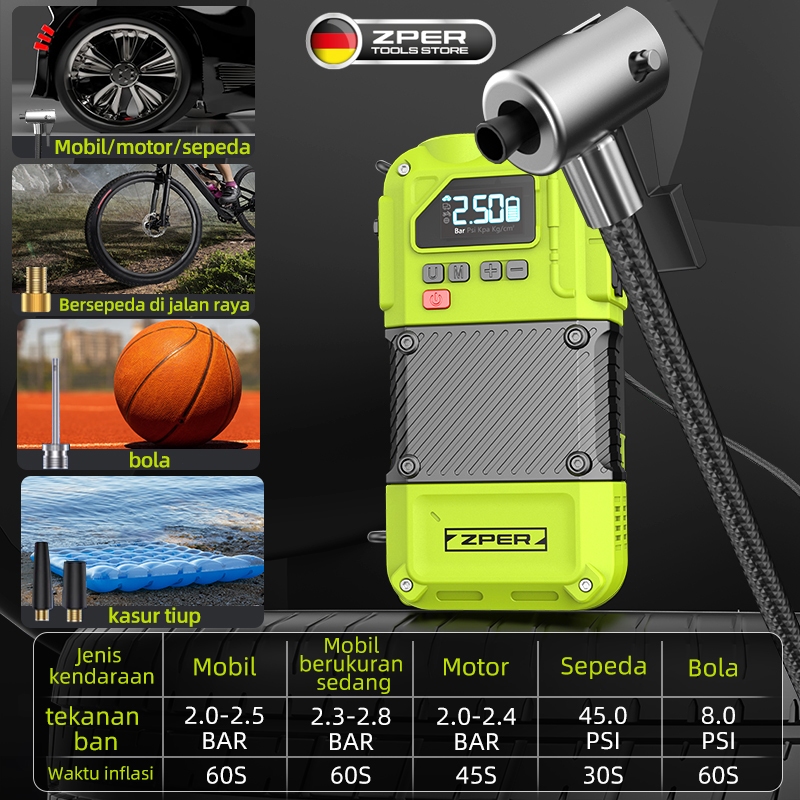 ZPER Pompa Ban Mobil Elektrik Portable Pompa Angin Ban Motor Jumper Aki Mobil Charger Aki