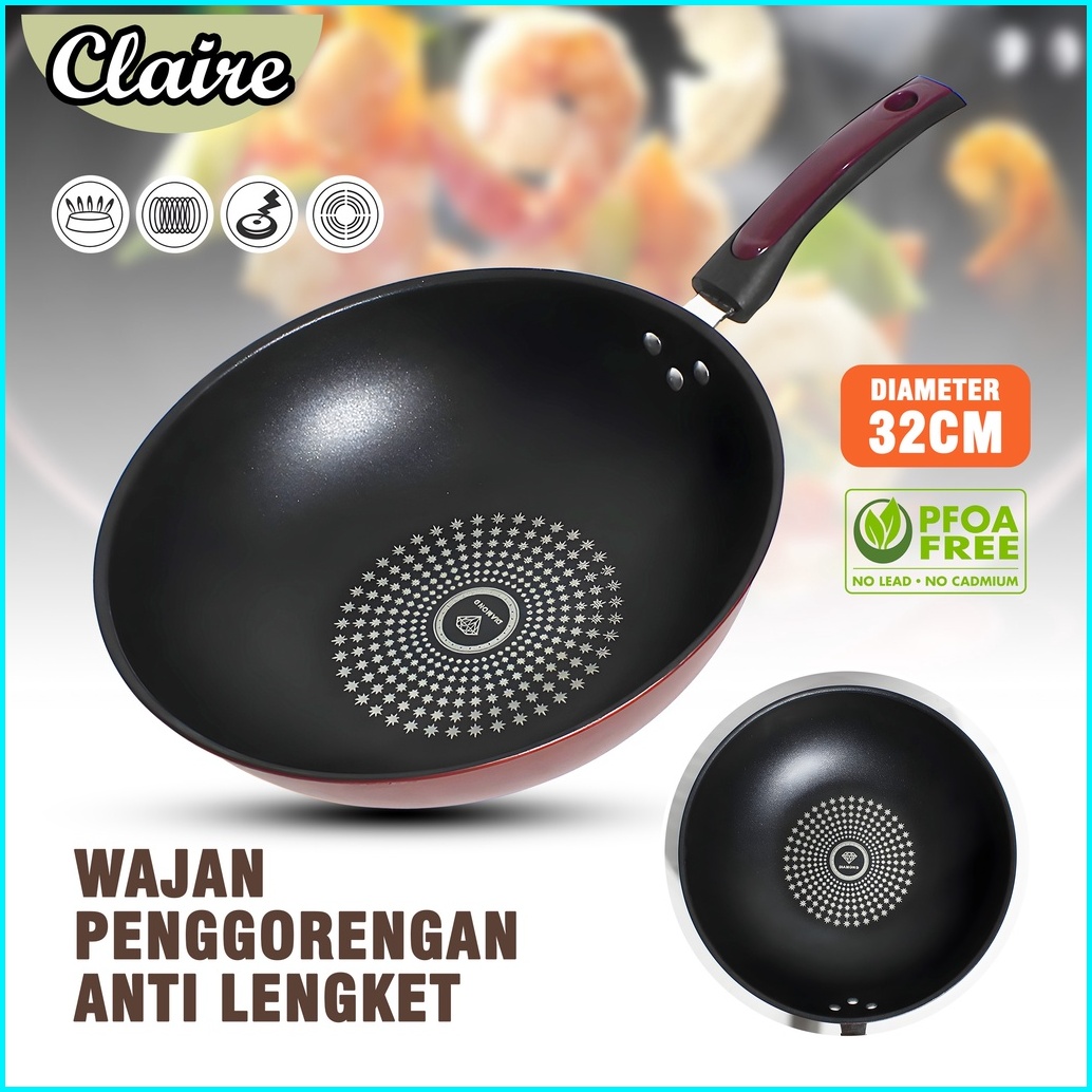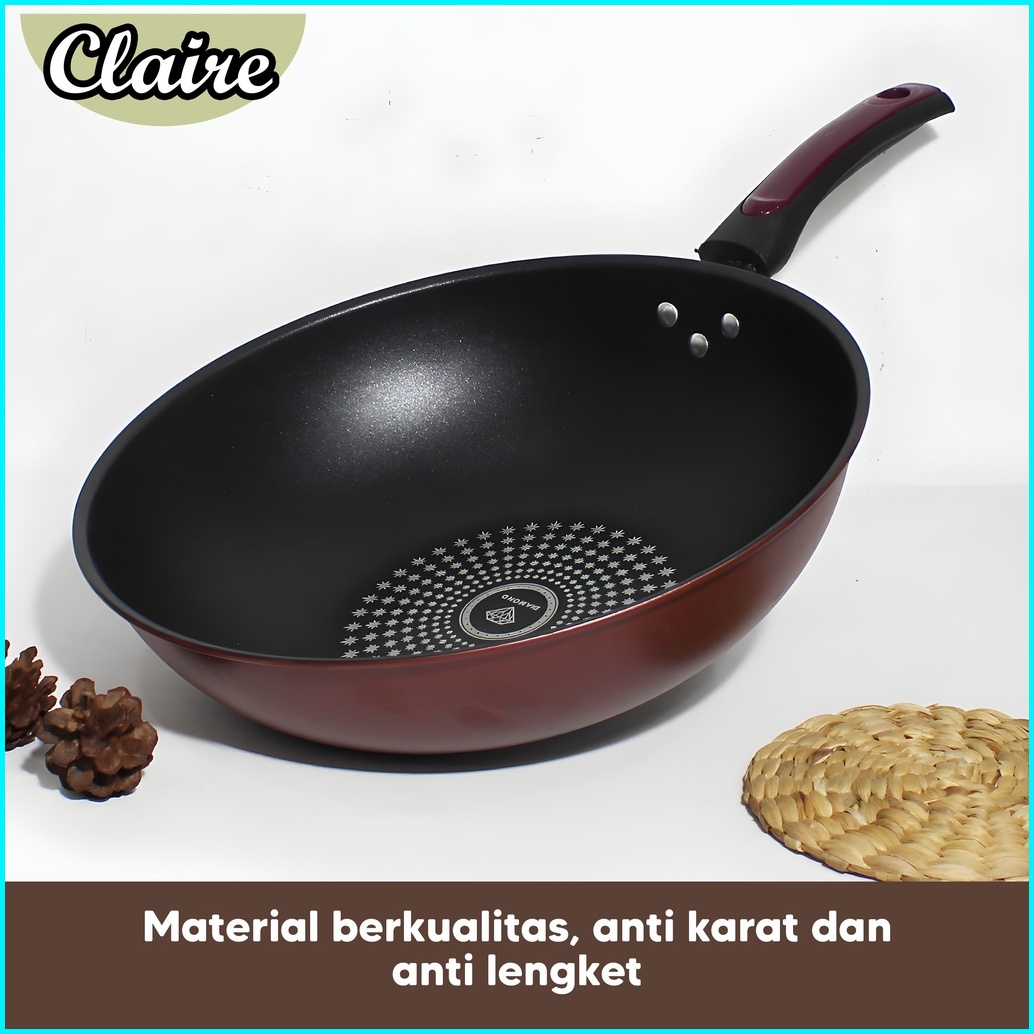 Wajan Penggorengan Anti Lengket Ukuran Diameter 32cm Wajan Gagang Jumbo Diamond Wok Pan