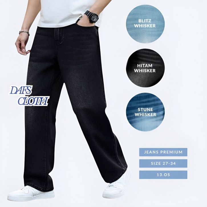 CELANA BAGGY JEANS PRIA GAYA SKENA – DENIM GOMBRONG HITAM WHISKER KEKINIAN | CELANA PANJANG STREETWEAR PREMIUM TRENDY