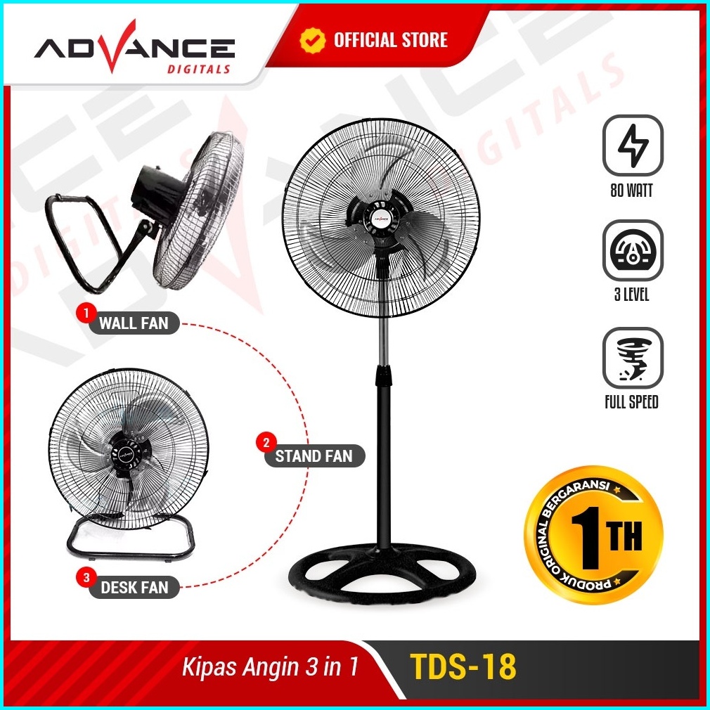 Advance Tds18 Kipas Angin Besi Tornado Dinding Meja Berdiri 18 Inch 3 In 1