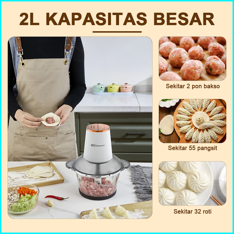Maimeite 2l Food Chopper Kaca 250w Food Processor Multifungsi Penggiling Daging 2 Speed