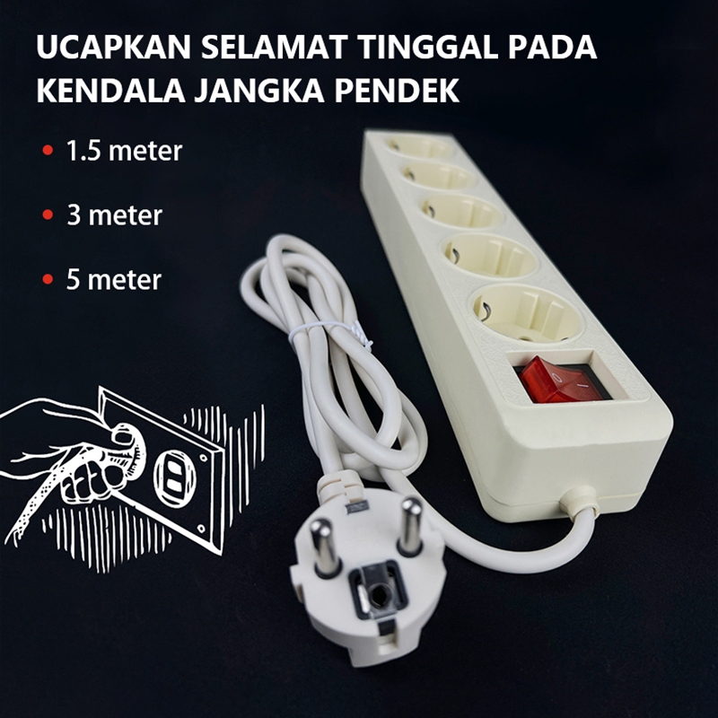 YEEXI Stop Kontak Kabel 2/3/4/5 Lubang 1.5/3/5 M Stop Kontak Colokan