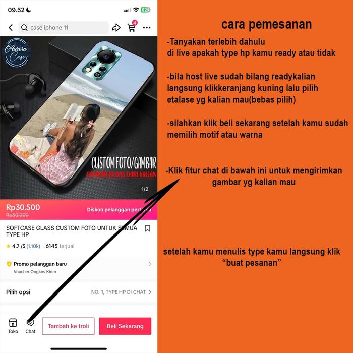 SOFTCASE GLASS CUSTOM FOTO UNTUK SEMUA TYPE HP Casing - NO. 1 TYPE HP DI CHAT