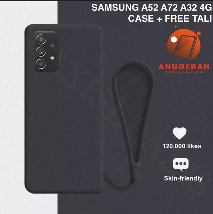 CASE UNTUK SAMSUNG A52 A72 A32 4G LANYARD TALI CASING COVER SILIKON SOFTCASE - Hitam A32 4G