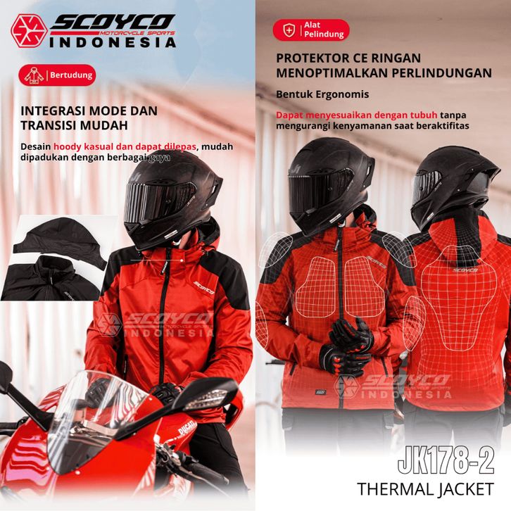 Jaket Motor 2 in 1 Waterproof Double Layer + Inner Thermal Hoodie Warrior 2 Scoyco JK178-2