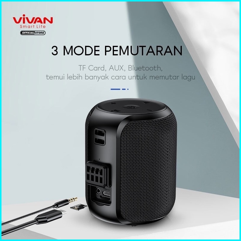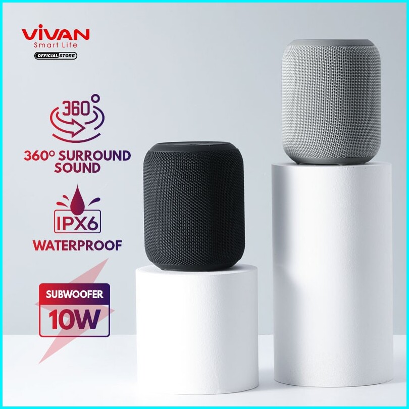 Vivan Speaker Bluetooth Vs12 V5.0 Surround Sound 360 Waterproof Sound Quality Ipx6 Garansi Original