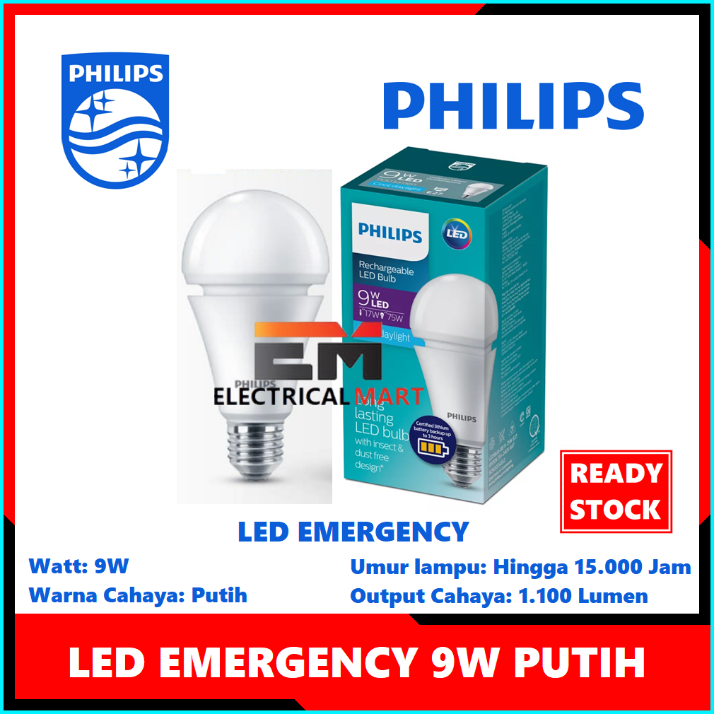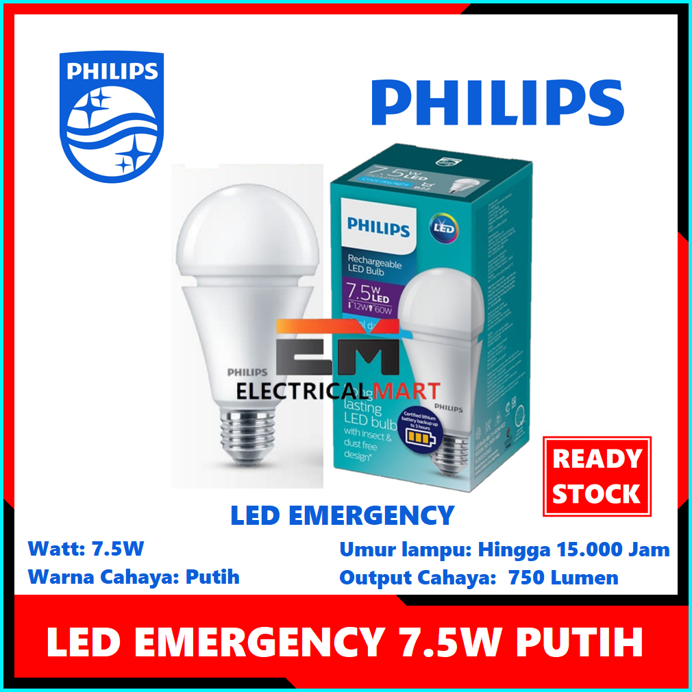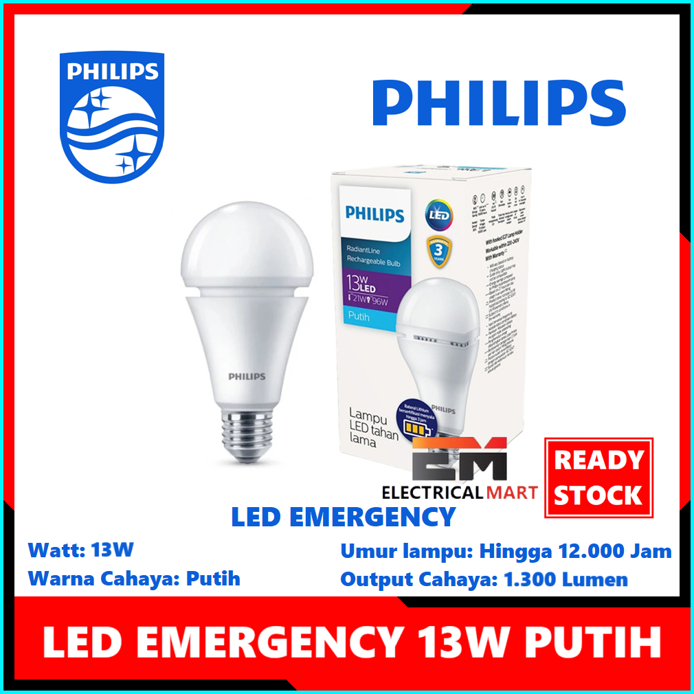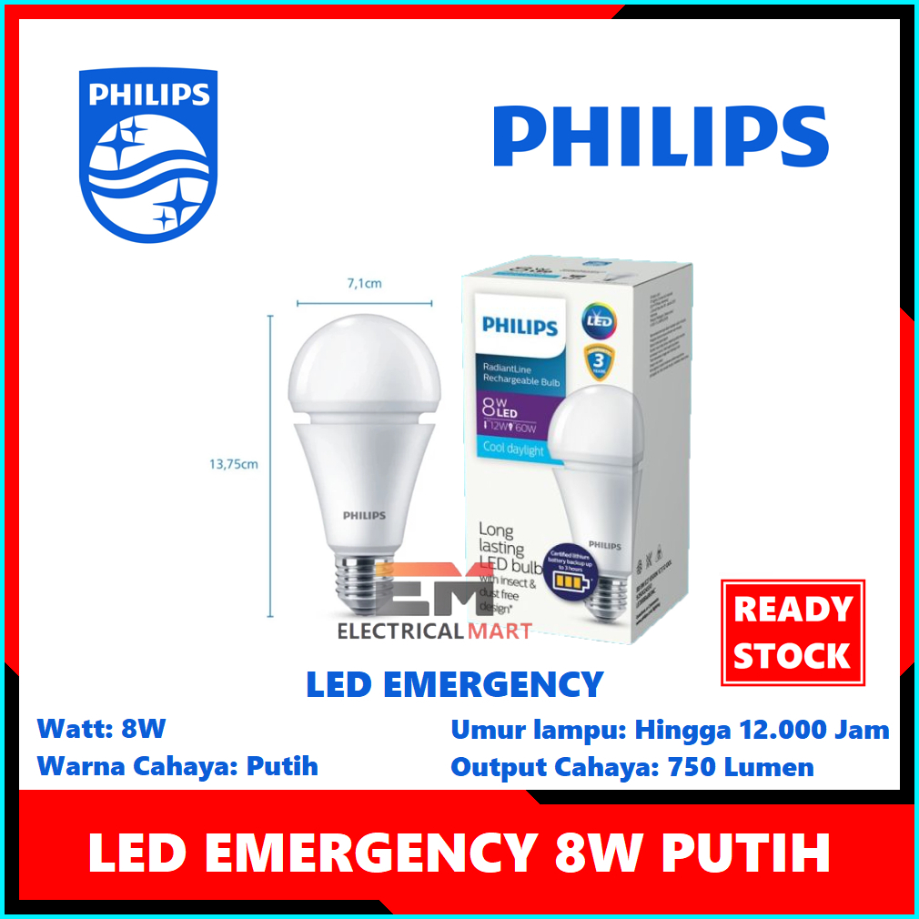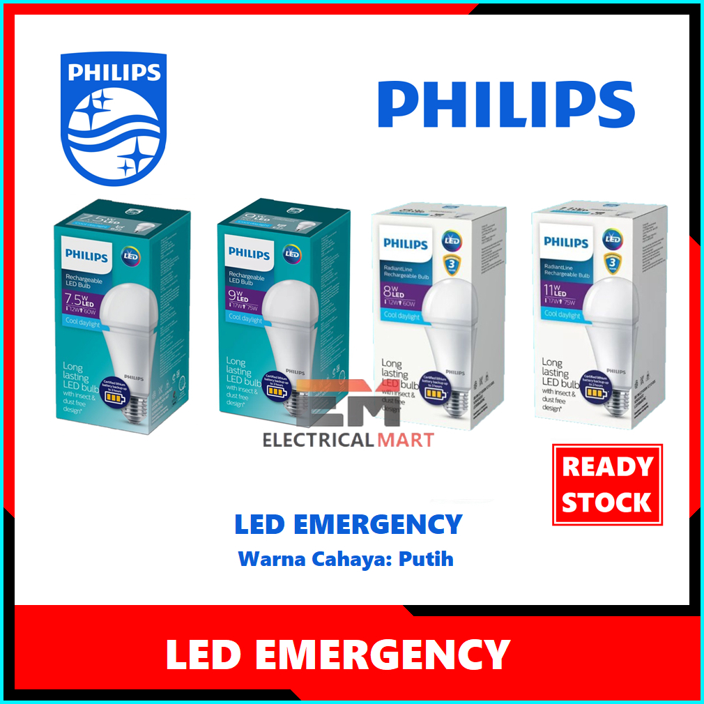 Lampu Emergency Led Bulb Rechargeable Philips Led 7.5w 9w Radiantline 8w 11w 13w 7.5 9 8 11 13 W Watt E27 Putih Cool Day
