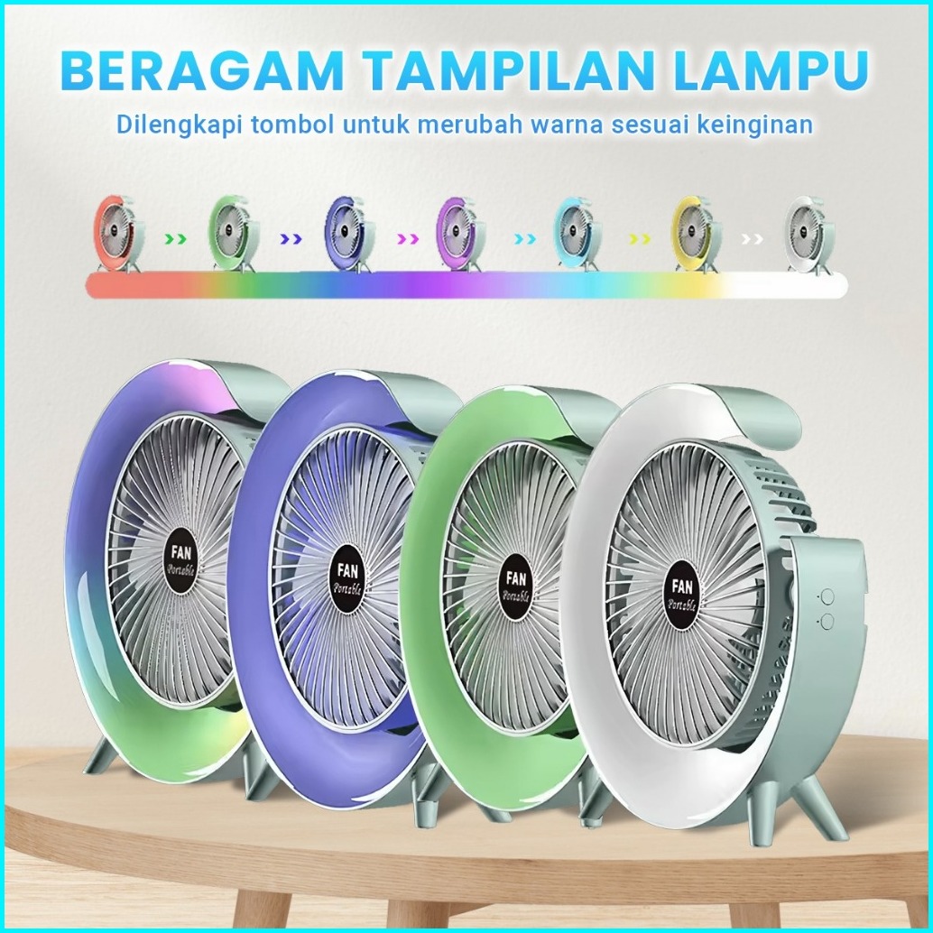 Kipas Angin Lampu F13 Warna Warni Meja Dekstop Fan Portable 2 In 1 F13