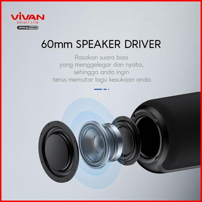 Speaker Bluetooth Vivan Vs12 Wireless Audio Portable Mega Bass Waterproof Ipx6 Hi-fi Aux Tws 5.0 Surround Sound 360 Spea