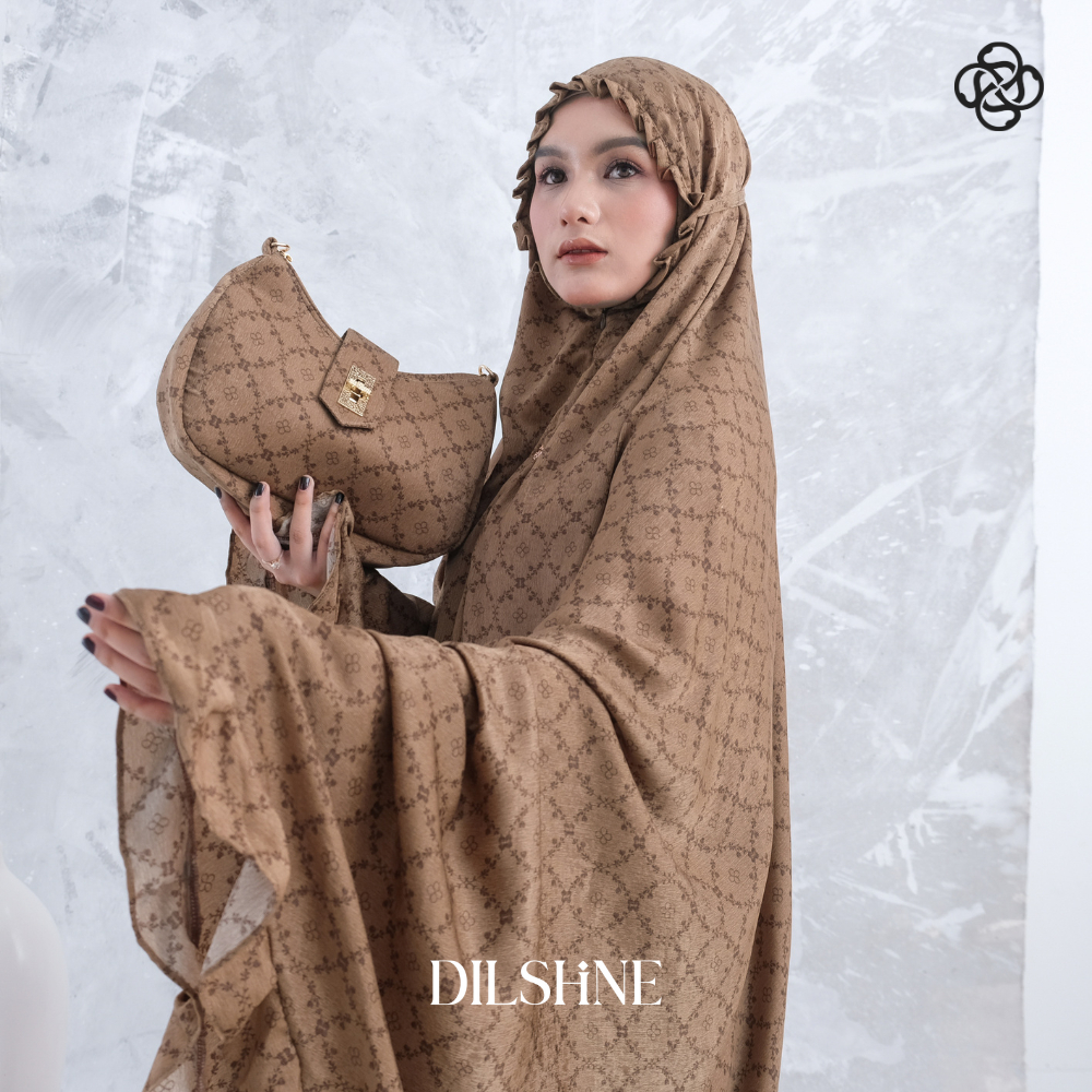 DILSHINE - Mukena Dewasa 2in1 Santorini Silk Motif Monogram Fayra