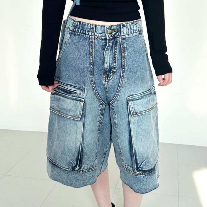 MAESON Jose Cargo Jorts Jeans Short Denim | Celana Denim Jeans Pendek Kargo Low Waist Acid Retro Blue