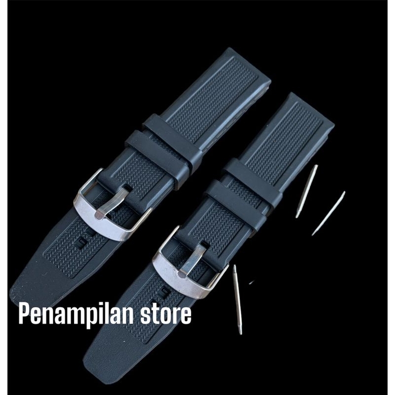 [Star] Strap tali jam tangan karet rubber hitam tanpa jahit 22mm