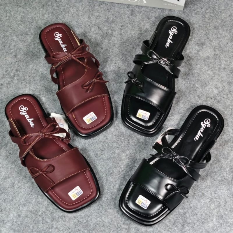 Syaba Sandal Wanita | Sendal Slop Warna Hitam