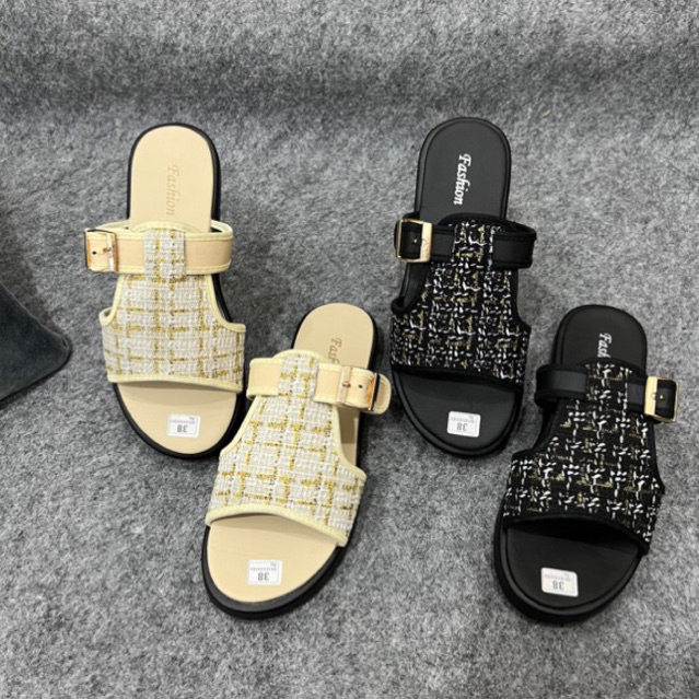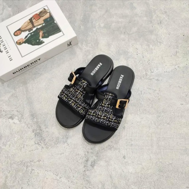 Sandal Cewek Slop Tali Samping Wedges