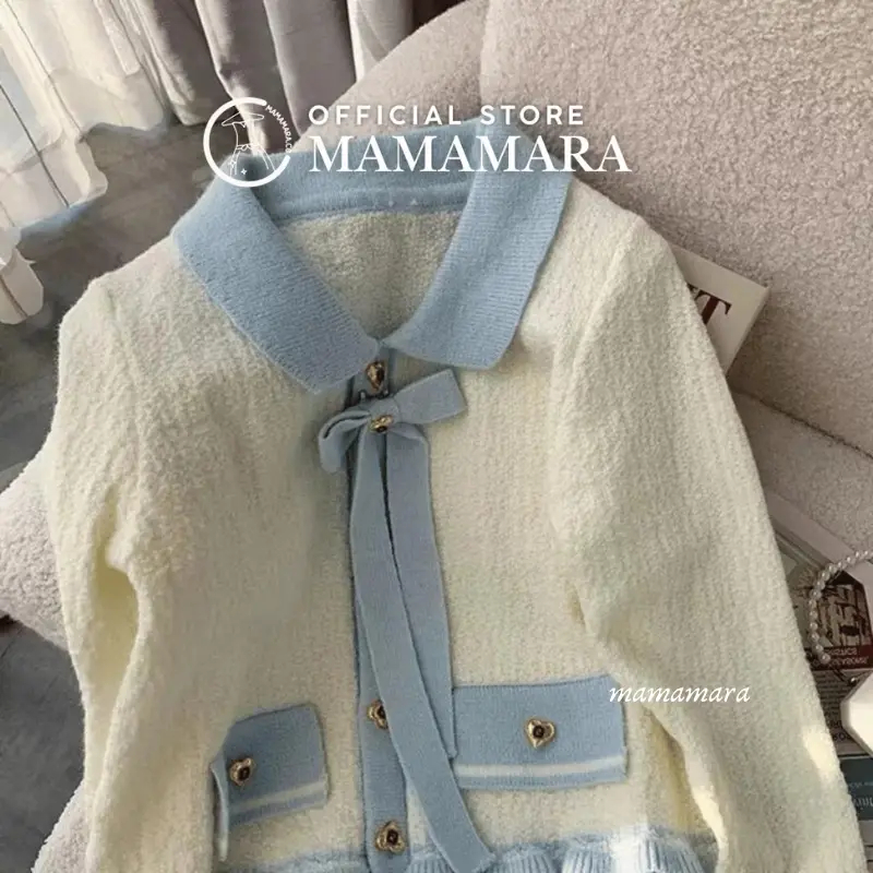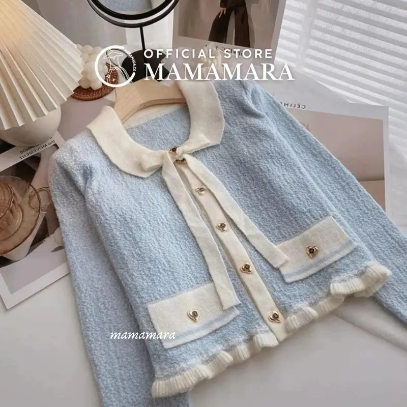 CARDIGAN TEBAL LOVE GOLD BUTTON CARDI SWEATER ATASAN RAJUT WANITA COLLAR RIBBON LONG SLEEVE TEXTURE BY MAMAMARA