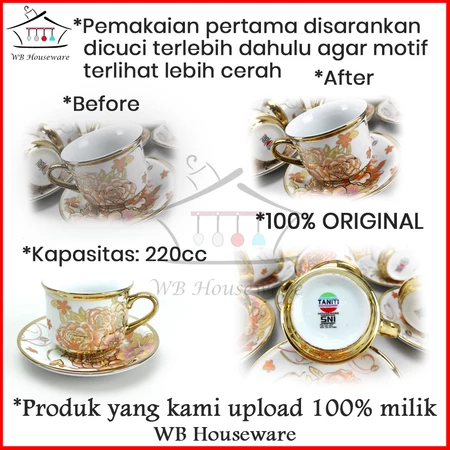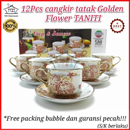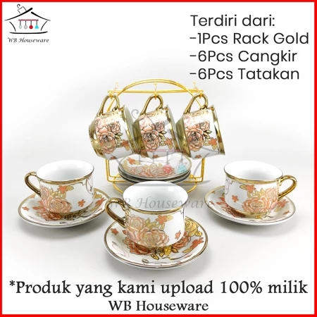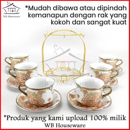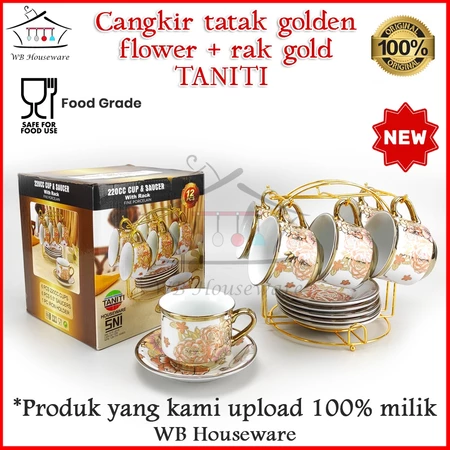 tea set + rak / gelas cangkir teh motif golden flower / coffe tea set porcelain TANITI