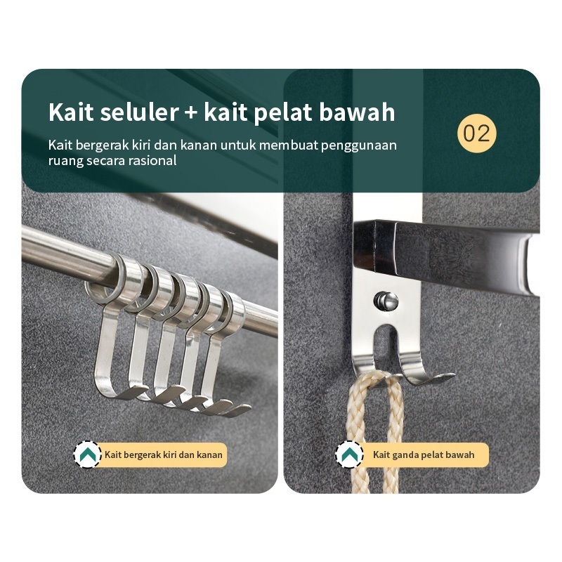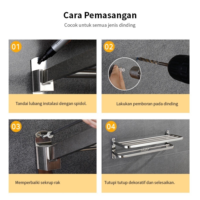 Rak Kamar Mandi Dinding Rak Bumbu Dapur Stainless Steel Rak Tempel Gantung