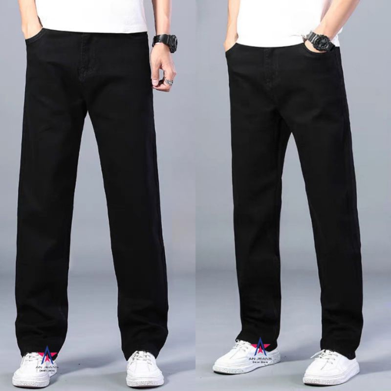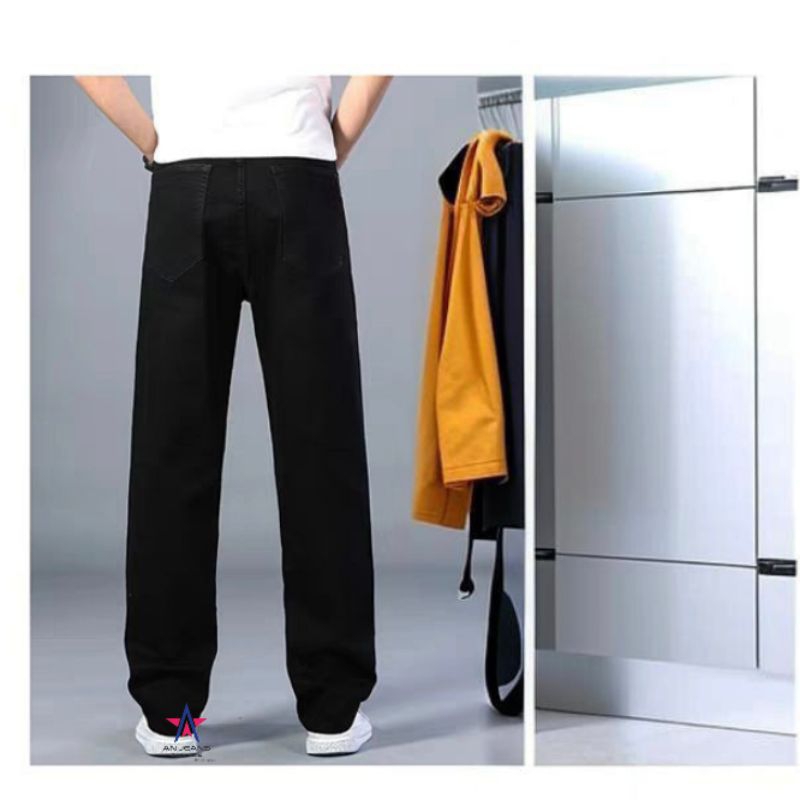 Celana Jeans Wide Leg Wisker Lebar Gombrong Skena Black Wisker pria loose fit jumbo big keren Bahan Denim Jeans