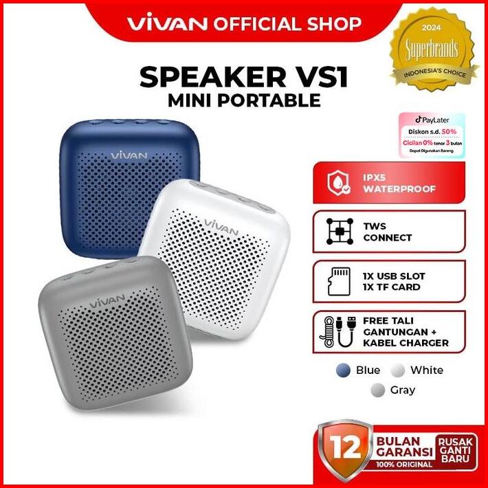 Speaker Bluetooth Vivan Vs1 Mini Wireless Audio Portable Mega Bass Waterproof Ipx5 Hi-fi