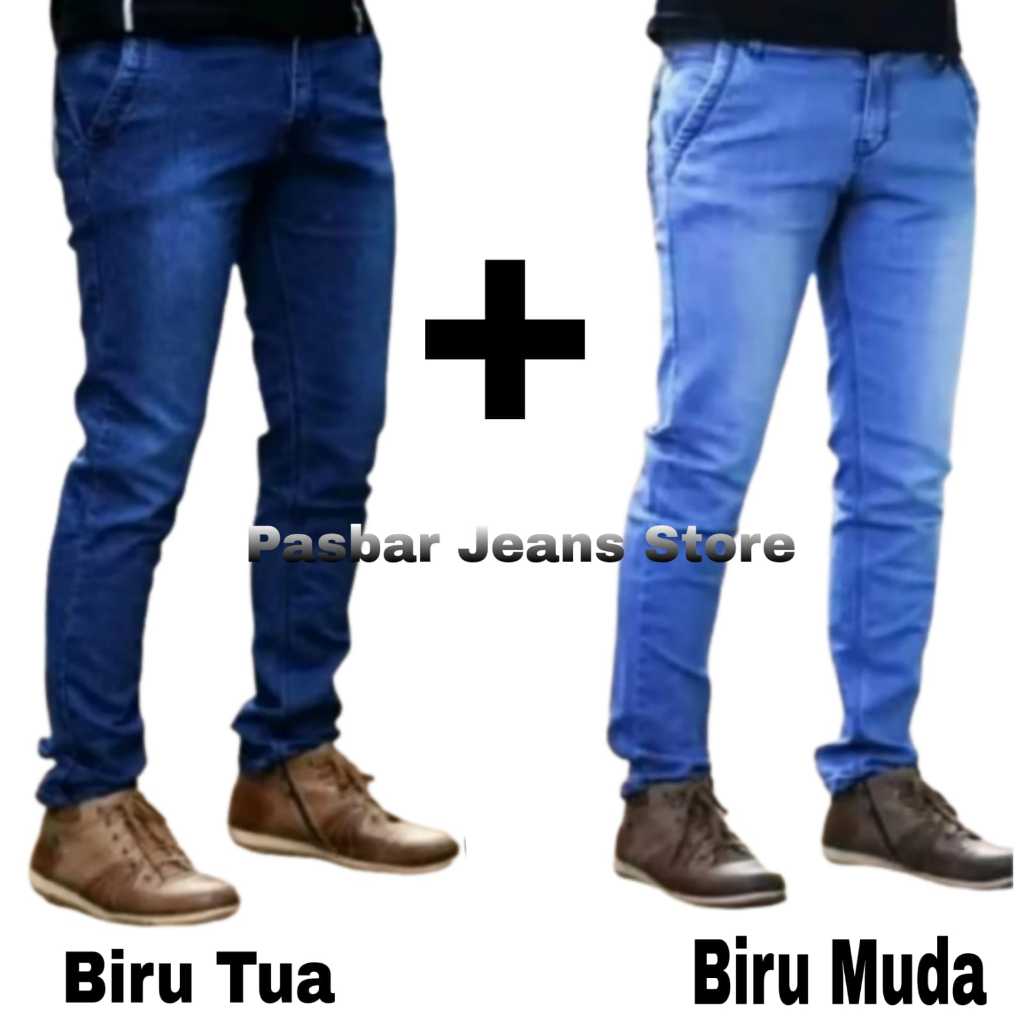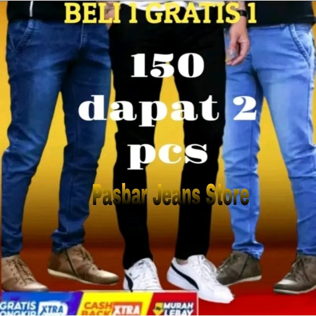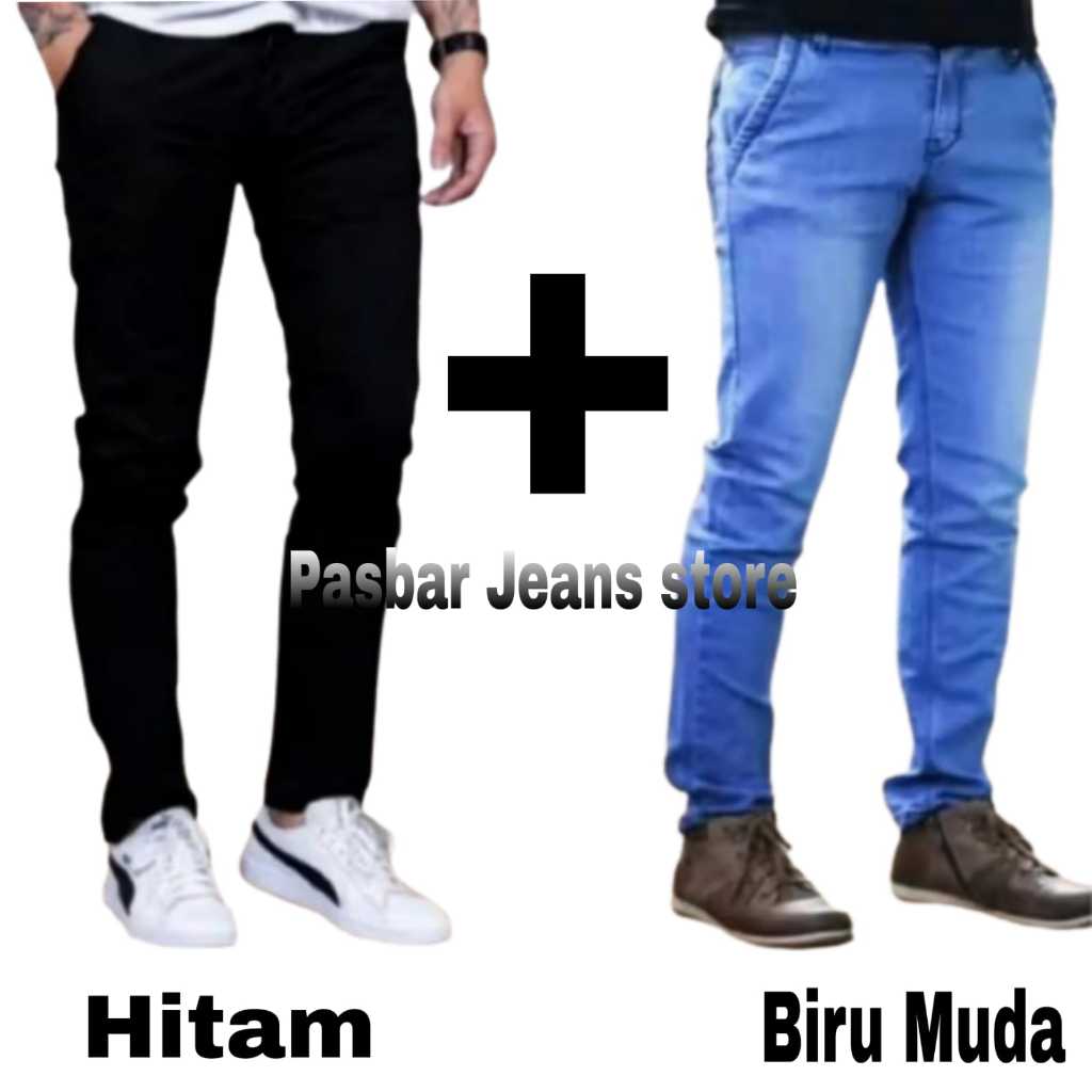 Paket Hemat Beli Satu Gratis Celana Jeans Pria Dewasa SlimFit Keren, Terlaris Celana Panjang Lepis Pria Jeans Denim Melar Ngaret Stret Slim-Fitting Hitam Stretch