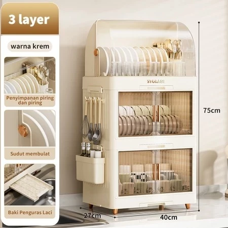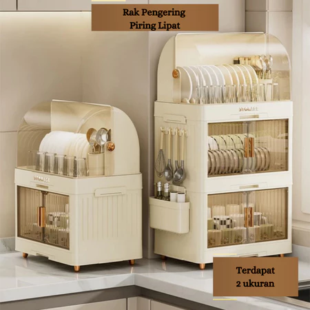 Alby Mart Drying rack cabinet Rak Pengering Piring Lipat Rak Cuci Piring Rak Mangkok Dapur Rak Piring Plastik Tertutup