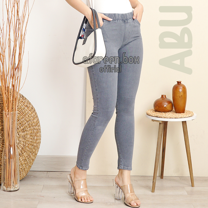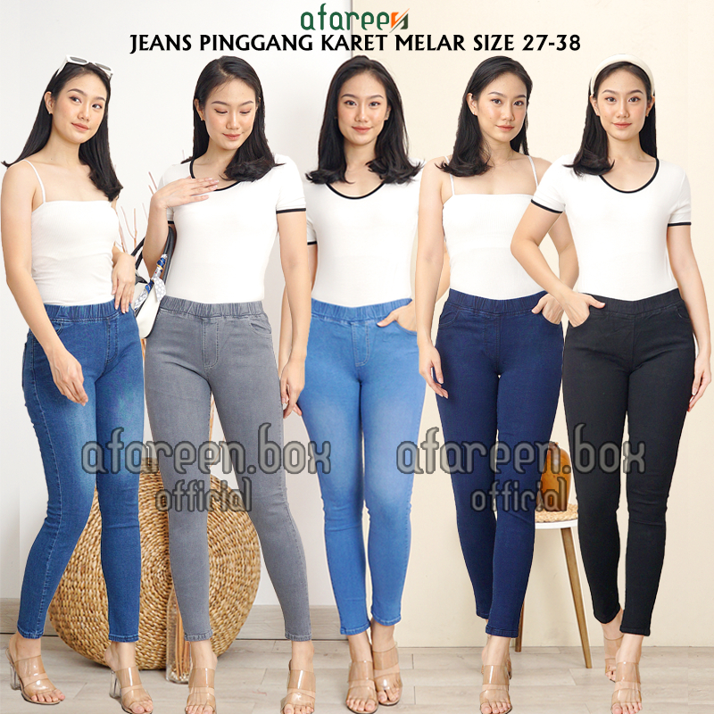 AFAREEN - Jeans Pinggang Karet Jumbo Legging Jeans Pensil Celana Panjang Jeans Wanita 27-43