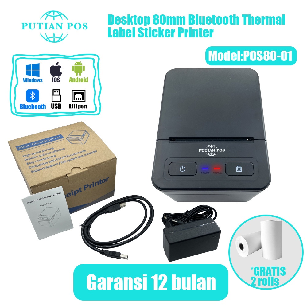 [Star]PUTIAN POS Desktop 80mm Thermal Printer POS80-01 Label Sticker Printer mendukung RJ11 TANPA DP