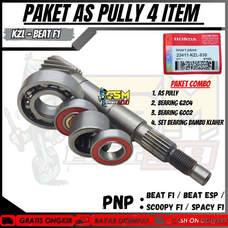 Laher Motor Original PAKET HEMAT 4ITEM KZL AS PULLY BEAT F1 + BEARING 6204 + LAHAR 6002 KUNINGAN + BEARING PULLY SCOOPY