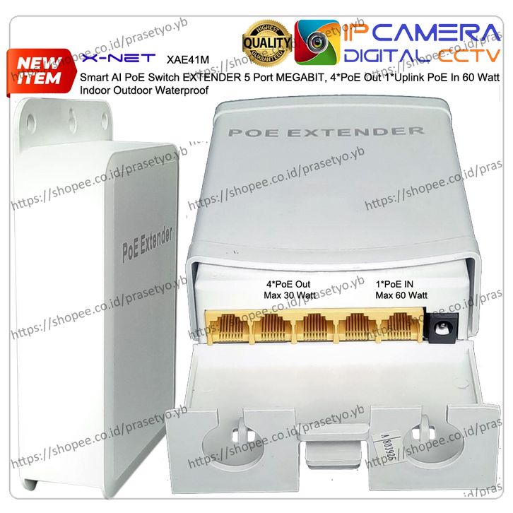PoE Switch Extender 5 Port MEGABIT, 4 * PoE Out 1 * PoE In 90W Uplink