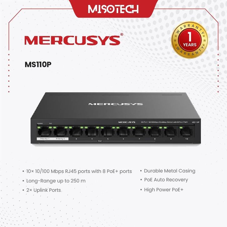 TP-Link TPLink Mercusys MS110P Unmanaged Switch PoE 8 Port 65W + 2 Uplink